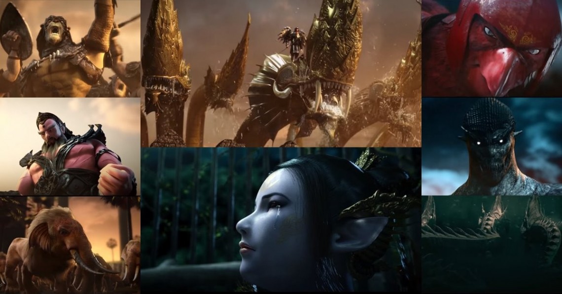 ในอดีตอันไกลโพ้นนานเกินกว่าจินตนาการจะเดินทางไปถึง ในสมัยที่โลกยังมิได้เป็นเช่นที่เห็นทุกวันนี้ และมนุษย์ก็ยังมิได้เป็นผู้ครอบครองพิภพทั้งหมด หากเป็นเพียงเผ่าพันธุ์เล็ก ๆ ที่เพิ่งเกิดใหม่ในหมู่สิ่งมีชีวิต อาทิ คชสีห์ นรสิงห์ ครุฑ นาค รากษส กินนรี กินนร ที่ผลัดเปลี่ยนกันทำสงครามเพื่อแย่งชิงและยึดครองอาณาจักรของกันและกัน สมัยนั้นศูนย์กลางของโลกคือเขาพระสุเมรุแวดล้อมด้วยมหานทีสีทันดรอันกว้างใหญ่ไพศาล กินอาณาเขตไปจนเกือบจะถึงสุดขอบโลก ไกลโพ้นออกไปจากนั้นคือ ป่าหิมพานต์อันเป็นที่อยู่ของบรรดาสิงสาราสัตว์แสนพิสดารทั้งหลาย “รากษส” เผ่าพันธุ์เร่ร่อนมีนิสัย ดุร้ายป่าเถื่อน ที่รวบรวมไพร่พลบุกตะลุยตีอาณาจักรเล็กอาณาจักรน้อยจนพ่ายแพ้ราบคาบ จนมาถึงชายแดนเมืองอโยธยา ที่ปกครองโดยเหล่าครุฑ จนในที่สุดทัพหน้าของพวกรากษสก็ยาตรามาถึงและทำการถล่มประตูเมืองอโยธยาอย่างหนัก