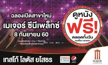 เมเจอร์ ซีนีเพล็กซ์ กรุ้ป เดินหน้าฉลองเปิดสาขาที่ 119 "เมเจอร์ ซีนีเพล็กซ์ โลตัส ยโสธร" วันที่ 8 กันยายน 2560 พร้อมมอบสิทธิพิเศษให้ชาวยโสธร ดูหนังฟรี! ทุกเรื่อง ทุกรอบ ตลอดทั้งวัน โดยสามารถเช็ครอบฉายได้ทาง Application Major Movie Plus หรือ www.majorcineplex.com