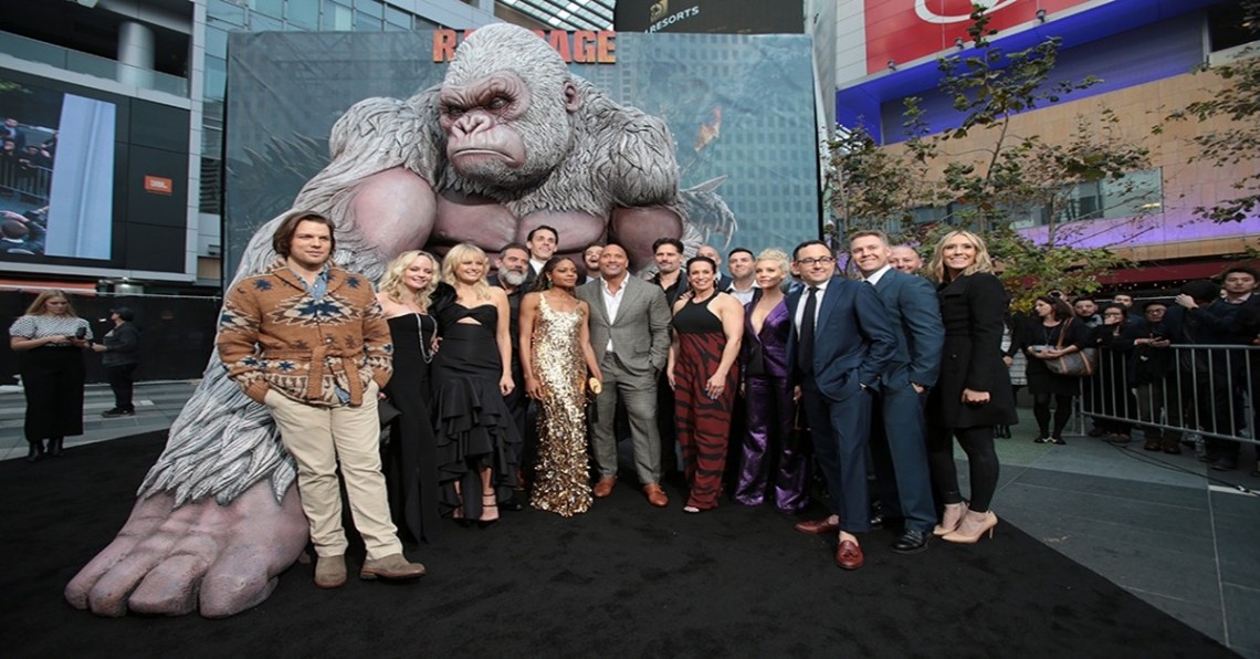 ดเวย์น จอห์นสัน นำทัพนักแสดง อาทิ นาโอมี แฮร์ริส, มาลิน เอเคอร์แมน, เจค ลาซี, เจฟฟรีย์ ดีน มอร์แกน, โจ แมนเกนเนโล่ พร้อมด้วยผู้กำกับ แบรด เพย์ตัน และผู้อำนวยการสร้าง โบ ฟลินน์ บุกไปถึงประเทศสหรัฐอเมริกา ร่วมงานพรีเมียร์เปิดตัว "Rampage - ใหญ่ชนยักษ์" ภาพยนตร์แอคชั่นผจญภัยสุดยิ่งใหญ่จากวอร์เนอร์ บราเธอร์ พิกเจอร์ส ที่จัดขึ้น ณ ลอสแอนเจลิส รัฐแคลิฟอร์เนีย